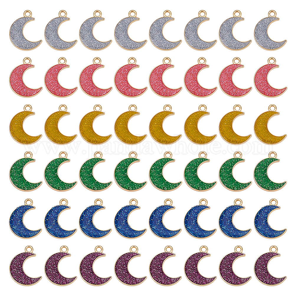 48 шт 6 цвета сплава эмалевые подвески, с блеском порошок, лунное очарование, золотые
