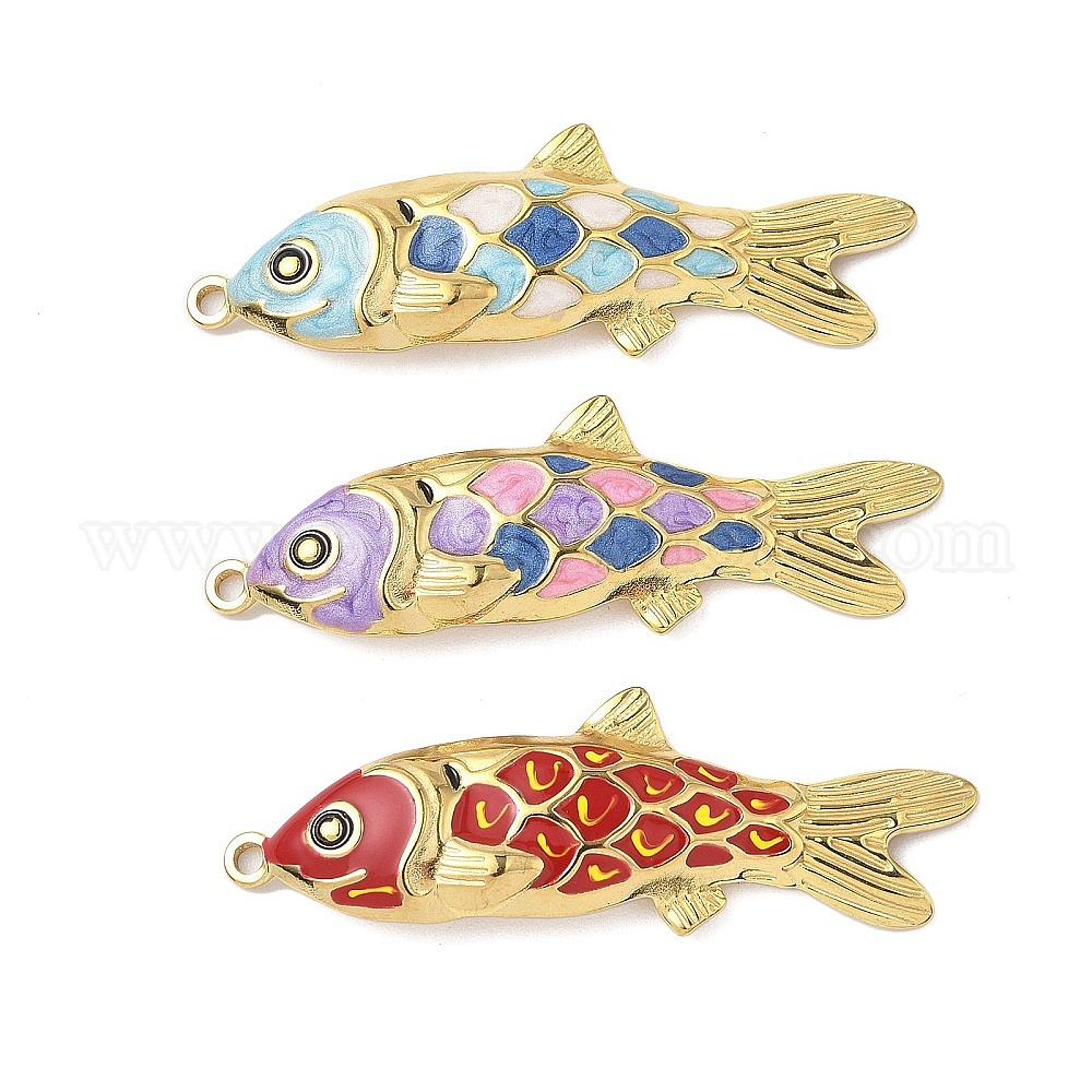 304 подвески из нержавеющей стали, рыба, с эмалью, золотые