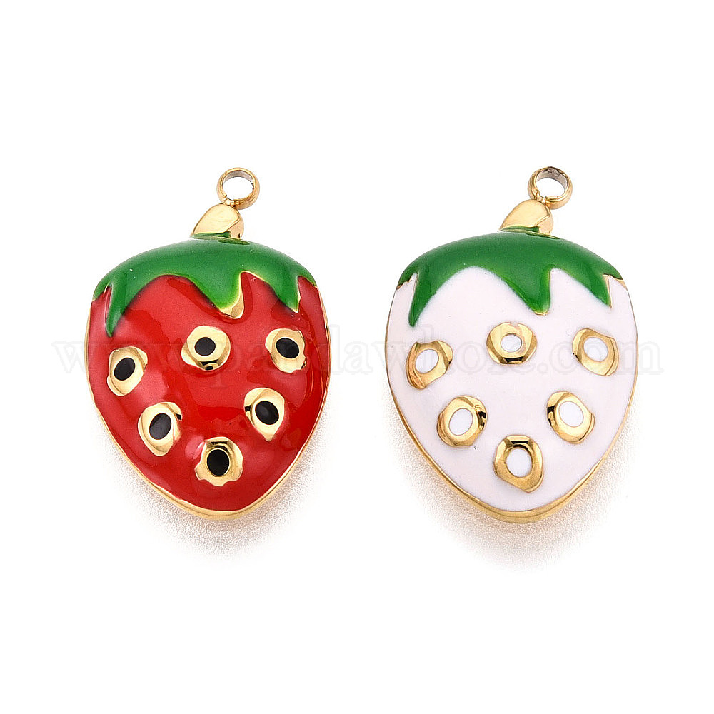 304 нержавеющей стальной эмали подвески, клубника, ионное покрытие (ip), реальный 18 k позолоченный