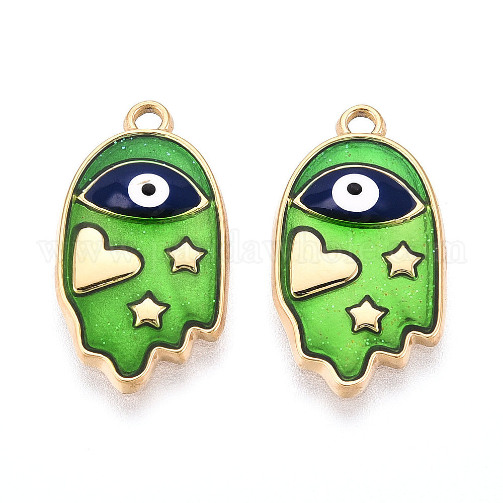 • Зеленый лайм 304 нержавеющей стальной эмали подвески, парамеции, ионное покрытие (ip), реальный 18 k позолоченный, зеленый лайм, 22x12x2 мм, отверстие : 1.4 мм