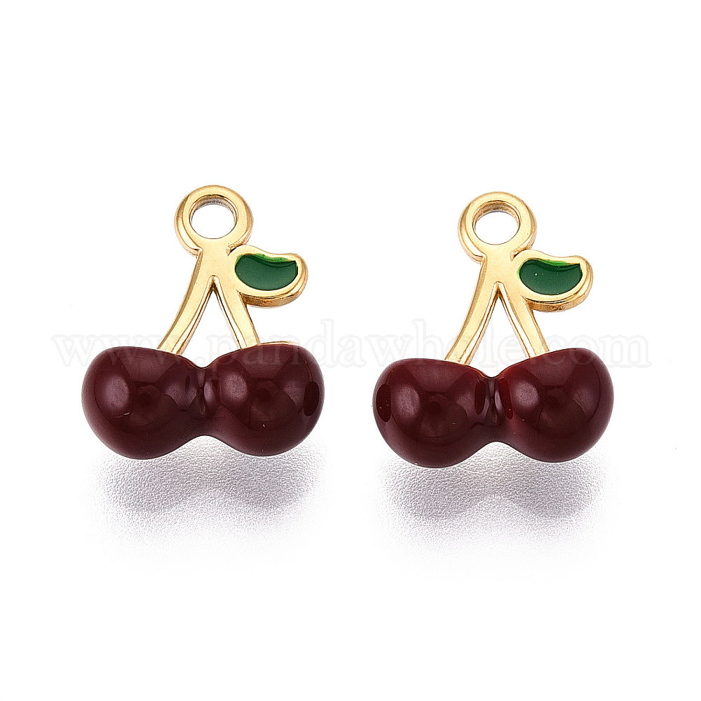 304 нержавеющей стальной эмали подвески, черри прелести, ионное покрытие (ip), реальный 18 k позолоченный