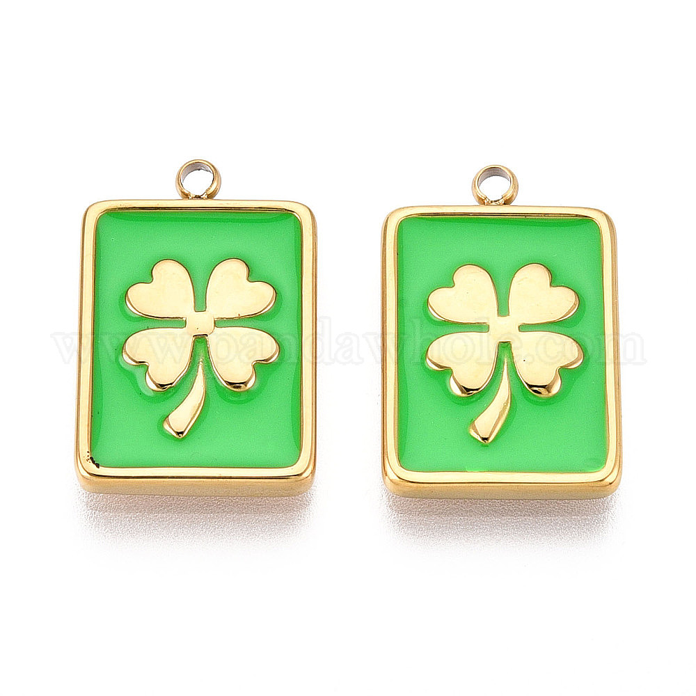 304 нержавеющей стальной эмали подвески, прямоугольник с клевером, ионное покрытие (ip), реальный 18 k позолоченный