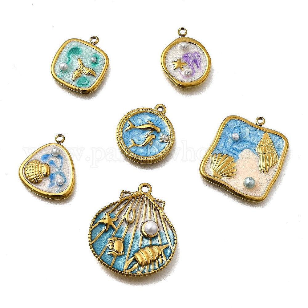 304 нержавеющей стальной эмали подвески, морские животные, с абс пластмассовой имитационной жемчужиной, ионное покрытие (ip), реальный 18 k позолоченный