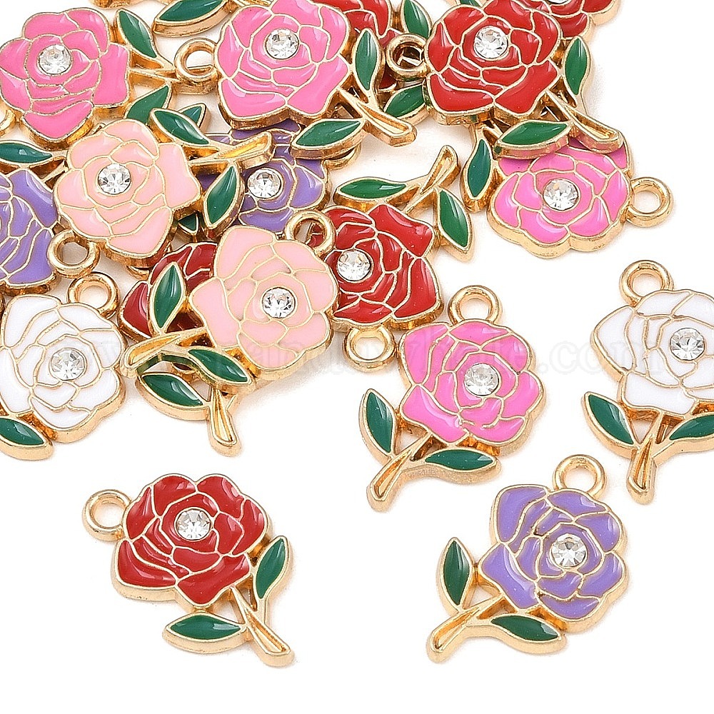 20шт. подвески из сплава с покрытием ствола, с эмалью и стразами, без кадмия, без никеля и без свинца, цветок, золотой свет