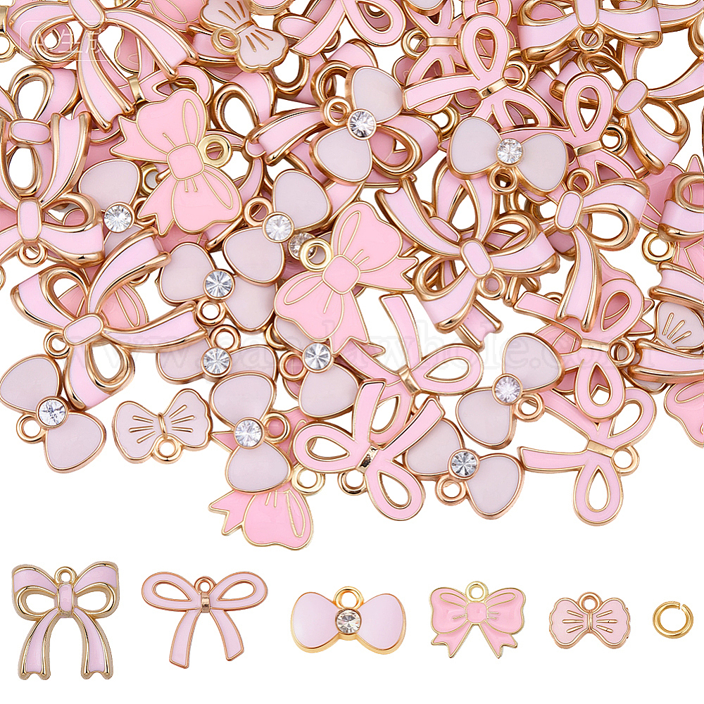 • Pink 80 шт. 5 стили подвески-бантики из сплава с эмалью, с 100железными прыгающими кольцами, розовые, 8.5x12x2 мм, отверстие : 1.5 мм, 16 шт / стиль