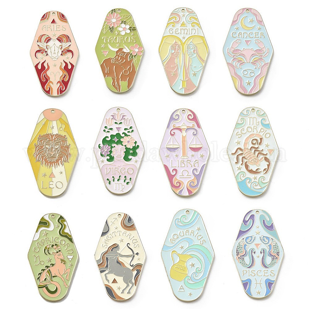 Большие подвески из сплава эмали с изображением двенадцати созвездий, золотые