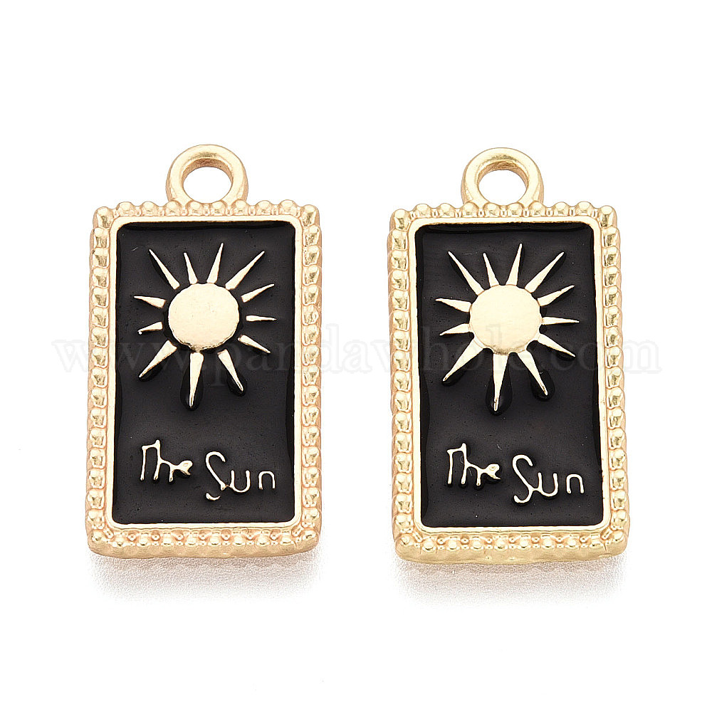 Подвески из эмали и сплава, прямоугольник и солнце, без кадмия и без свинца, матовый золотой цвет