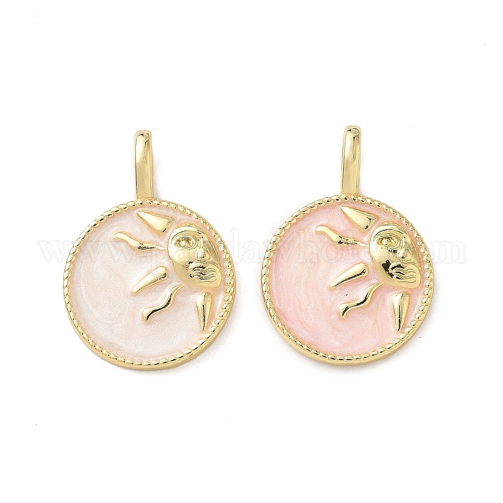 Латунь эмаль подвески, реальный 18 k позолоченный, плоские круглые с солнцем