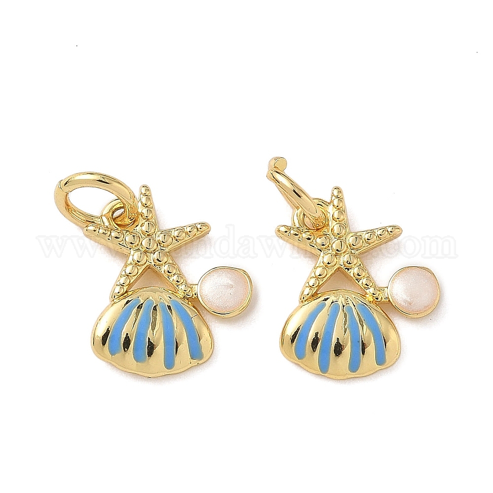 Латунь эмаль подвески, в форме ракушки с подвесками в виде морских звезд, с целью перехода в кольце