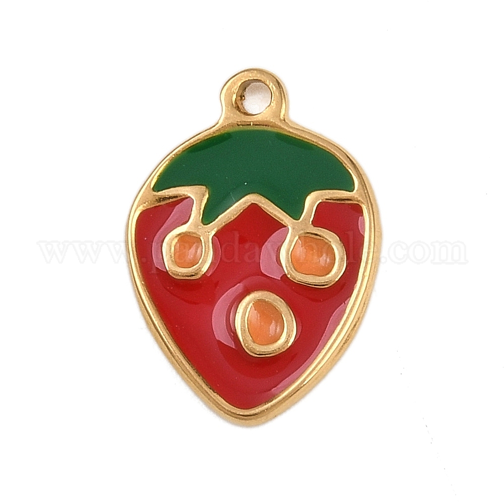 • Золотой 304 нержавеющей стальной эмали подвески, клубника прелести, золотые, 16x11.5x1.4 мм, отверстие : 1.2 мм