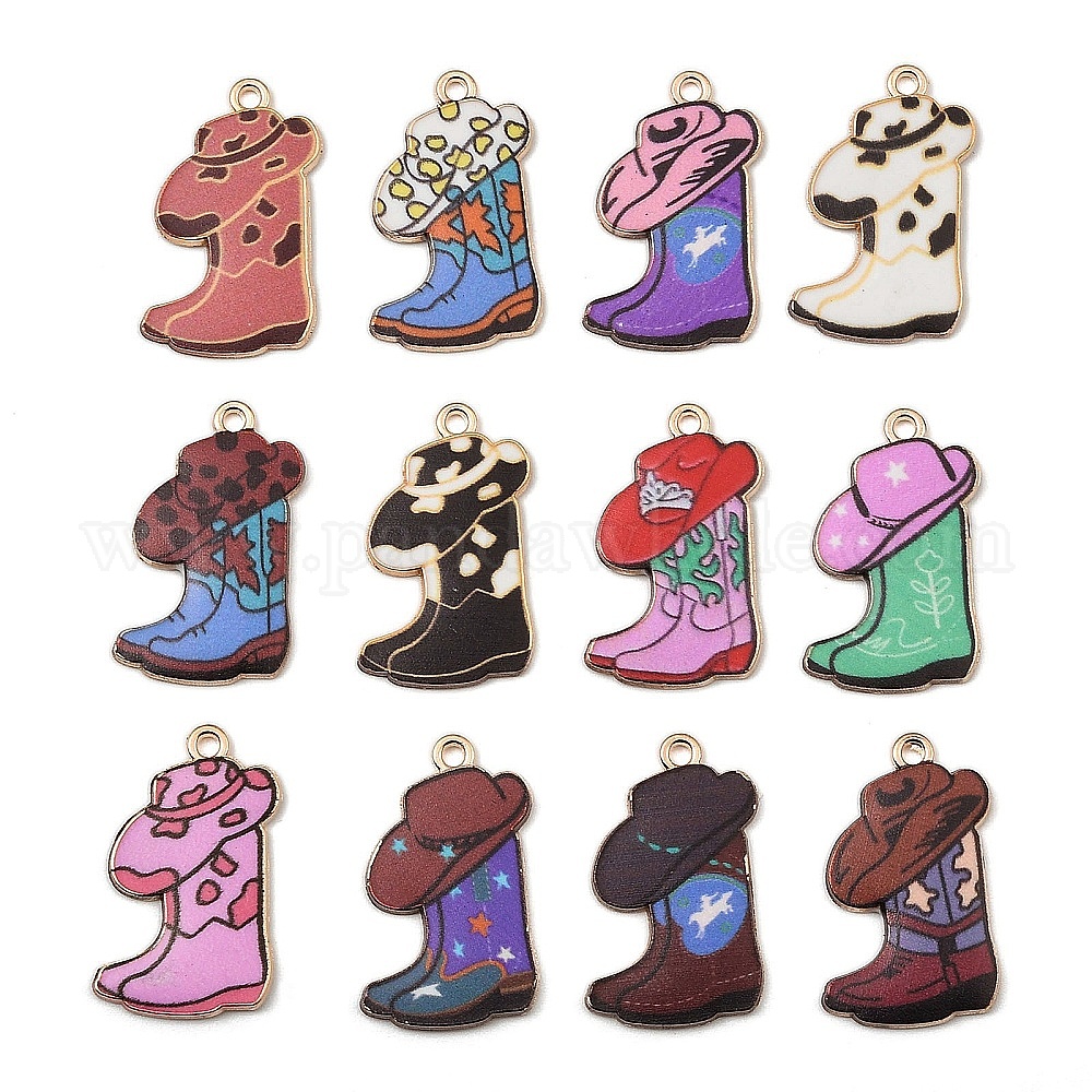Подвески из эмалевой ткани из богемского сплава, подвески в виде ковбойских сапог с принтом, золотые