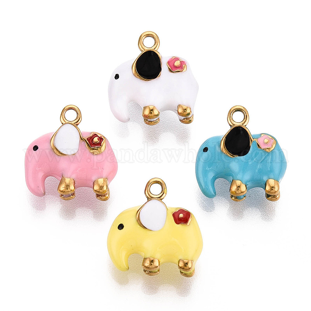 • Настоящее золото 18K 304 подвески из нержавеющей стали, Слон прелести, реальный 18 k позолоченный, 14x13.5x8.5 мм, отверстие : 1.5 мм