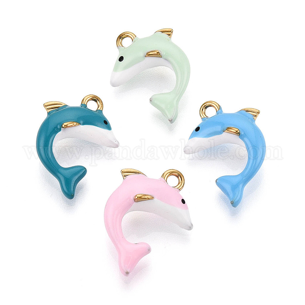 304 нержавеющей стальной эмали подвески, дельфин, без свинца и без кадмия, реальный 18 k позолоченный
