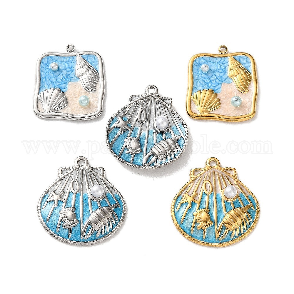304 прелести нержавеющей стали, формы раковины, с эмалью и АБС-пластиком, имитация жемчуга, ионное покрытие (ip)