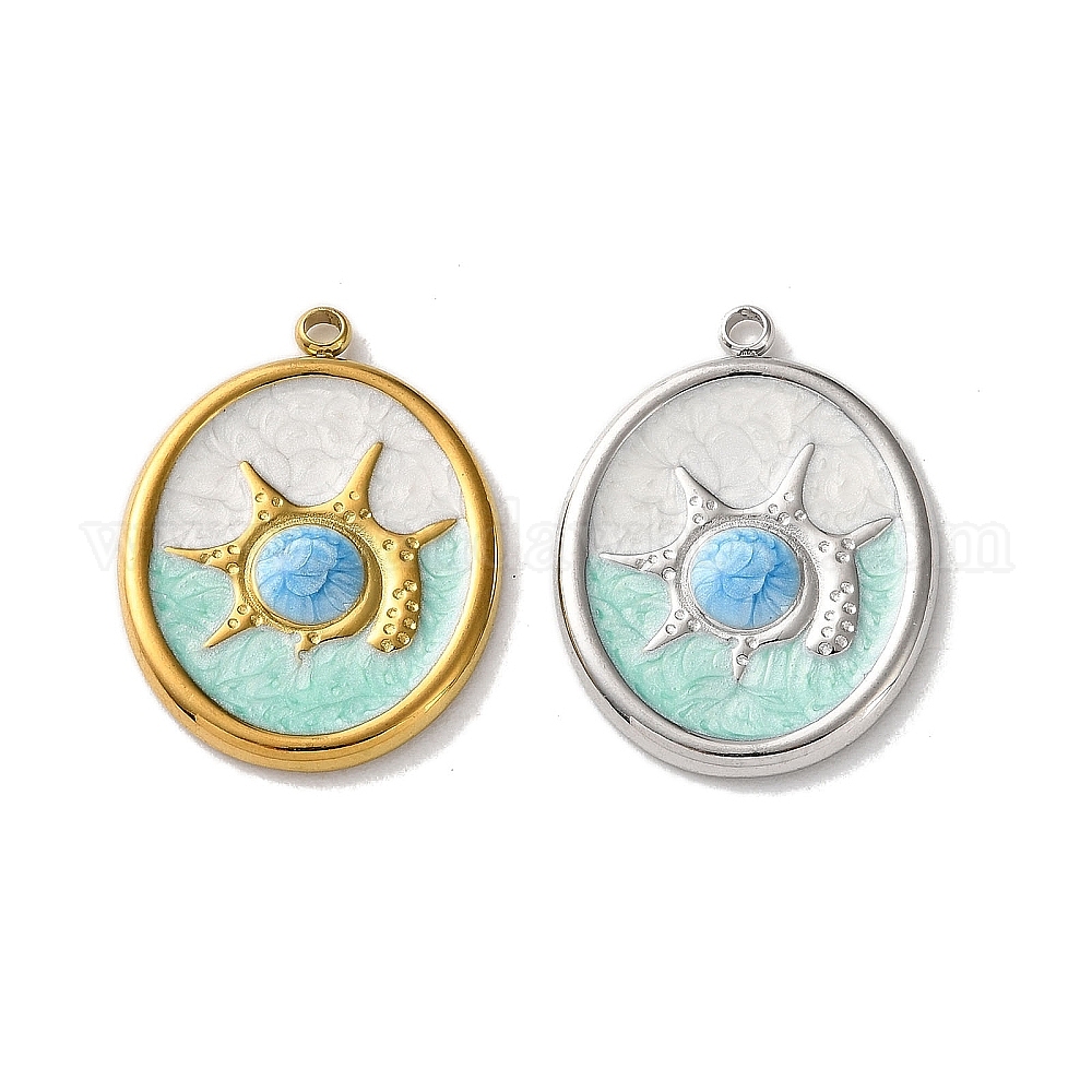 304 подвески из нержавеющей стали, овал с солнечными подвесками, с эмалью, ионное покрытие (ip)