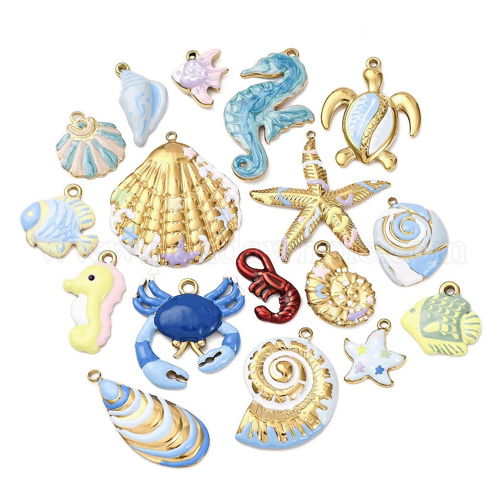 304 подвески из нержавеющей стали, с эмалью, океанские темы, реальный 18 k позолоченный, ионное покрытие (ip), без кадмия, без никеля и без свинца