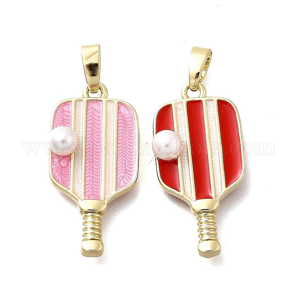 Латунь эмаль подвески, ракетка, с abs имитационными жемчужными бусинами , реальный 18 k позолоченный
