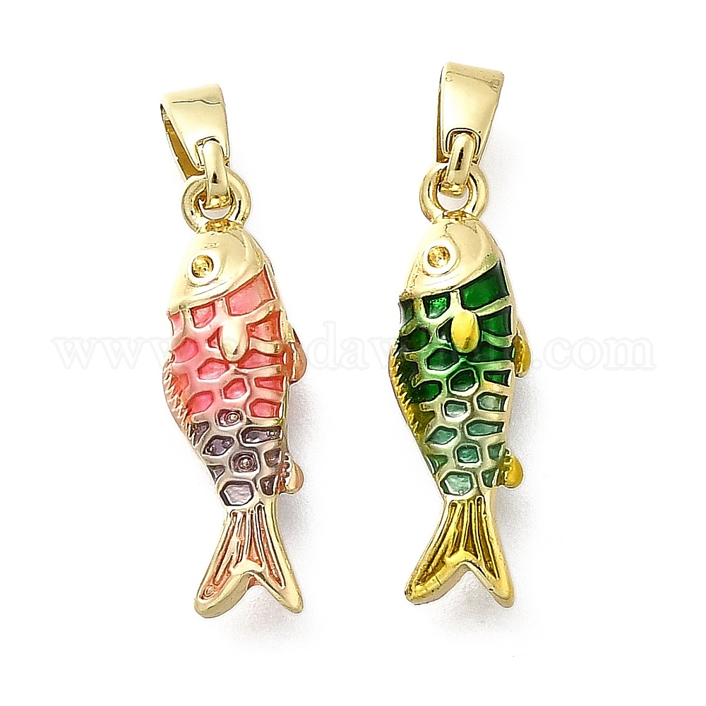 Латунь эмаль подвески, реальный 18 k позолоченный, рыбы прелести