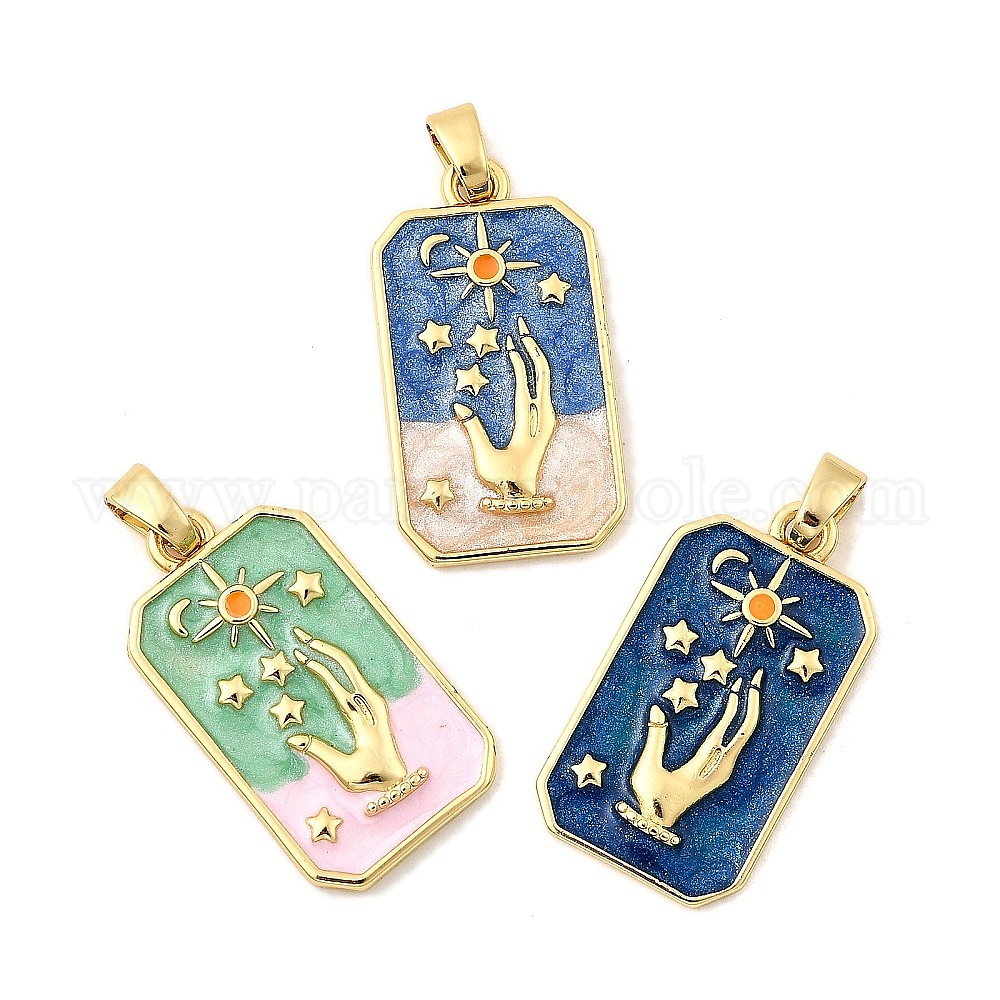 Латунь эмаль подвески, прямоугольник, солнце, рука и звезда, стойки покрытие, долговечный, без кадмия и без свинца, золотые