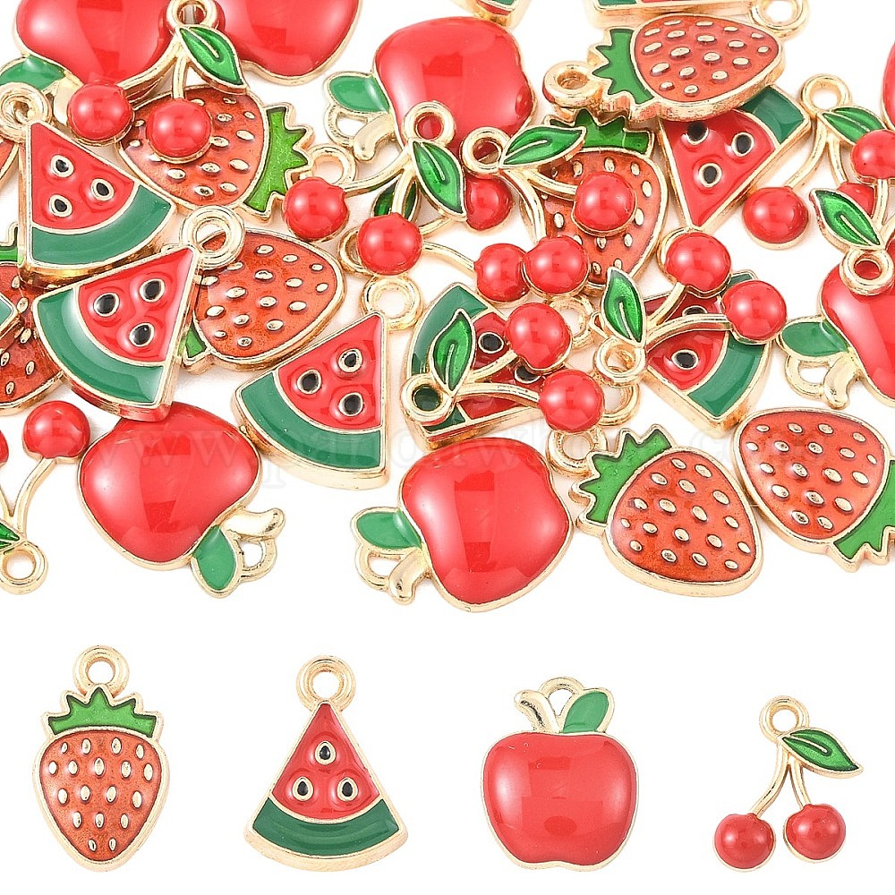 40 шт 4 стили подвески из сплава эмали, смешанные фрукты, золотой свет