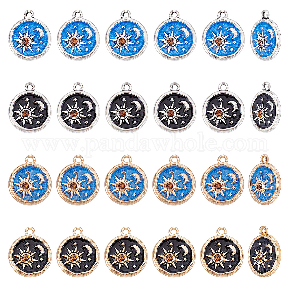 24 шт 4 цвета подвески из цинкового сплава с эмалью, плоский круг, луна и солнце