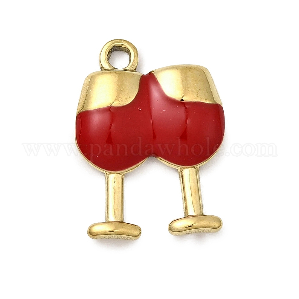 • Настоящее золото 18K 304 нержавеющей стальной эмали подвески, бокал, ионное покрытие (ip), реальный 18 k позолоченный, 16.5x12.5x2.5 мм, отверстие : 1.6 мм