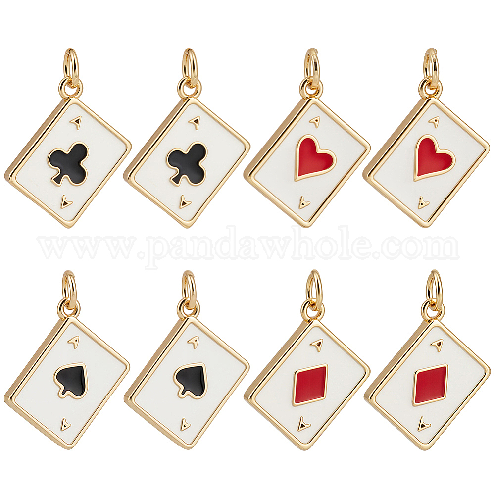 8 шт 4 стили латунные эмалевые подвески, с целью перехода в кольце, без кадмия и без свинца, долговечный, стойки покрытие, прелести игральных карт, реальный 18 k позолоченный