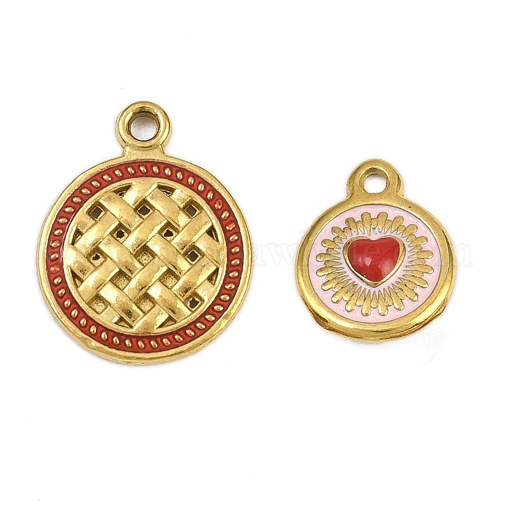• Красный 304 прелести нержавеющей стали, круглые, с эмалью, ионное покрытие (ip), золотые, красные, 13x10.5x2.5 мм, отверстие : 1.4 мм