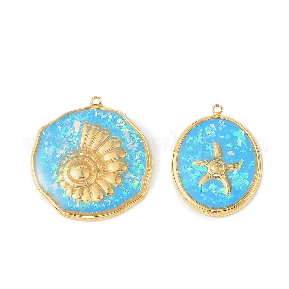 304 подвески из нержавеющей стали, с эмалью и пайетками, золотые