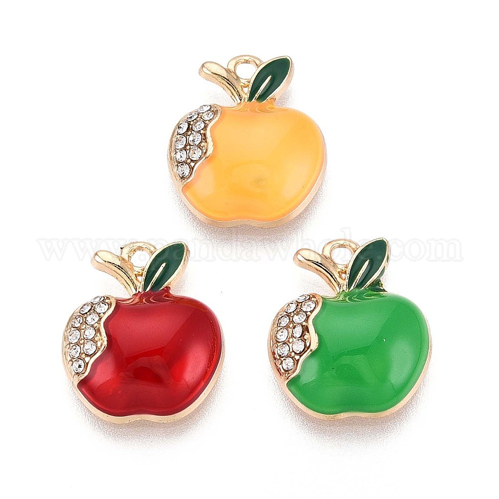 Подвески из сплава с покрытием из хрусталя и эмали, яблоко, без кадмия, без никеля и без свинца, золотые
