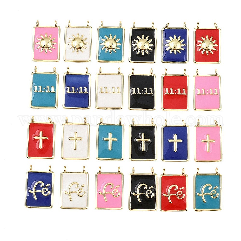 Латунь эмаль подвески, прямоугольник амулеты, без свинца и без кадмия, долговечный, реальный 18 k позолоченный, стойки покрытие