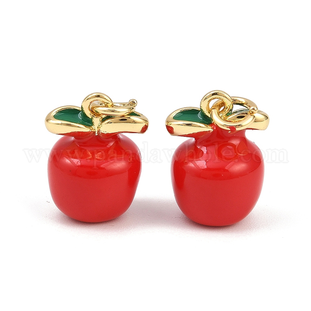 • Красный Латунь эмаль подвески, с целью перехода в кольце, яблочные прелести, без свинца и без кадмия, долговечный, реальный 18 k позолоченный, стойки покрытие, красные, 13x10x9 мм, отверстие : 2.9 мм