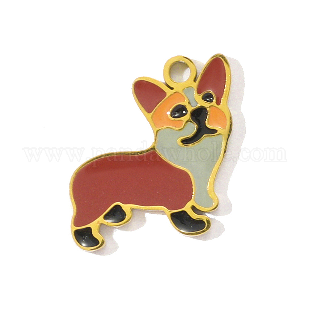 • Индийский Красный 304 нержавеющей стальной эмали подвески, собака прелести, ионное покрытие (ip), реальный 18 k позолоченный, Индийская красная, 13x12 мм