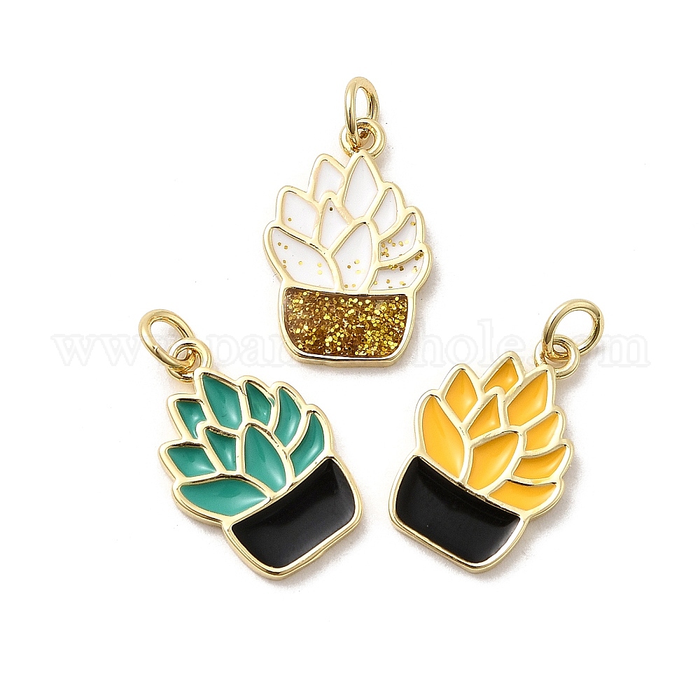 Латунь эмаль подвески, прелести растений, стойки покрытие, долговечный, без кадмия и без свинца, реальный 18 k позолоченный, с целью перехода в кольце