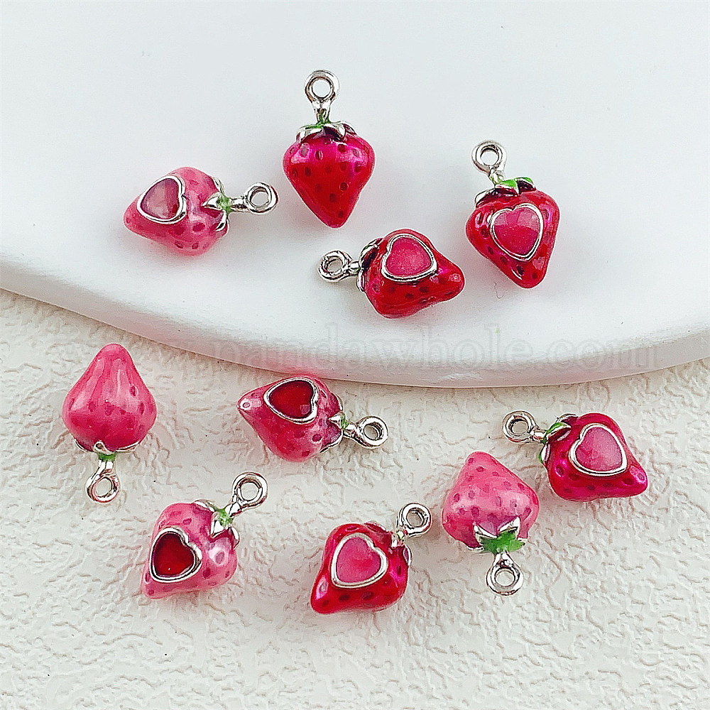 Подвески из эмали и сплава, клубника прелести, платина