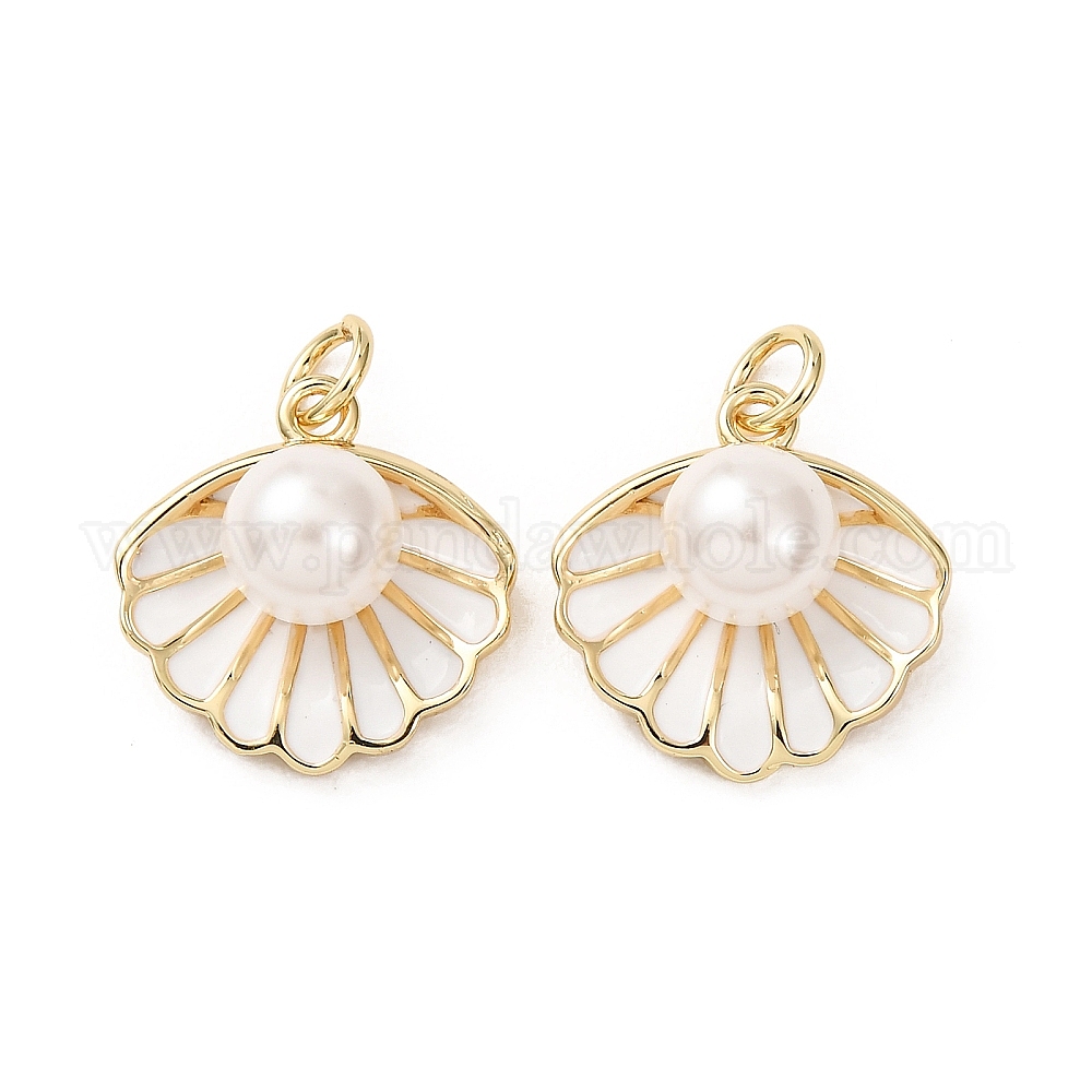 Латунь эмаль подвески, с бусиной ракушки и прыжковым кольцом, долговечный, реальный 18 k позолоченный, формы раковины