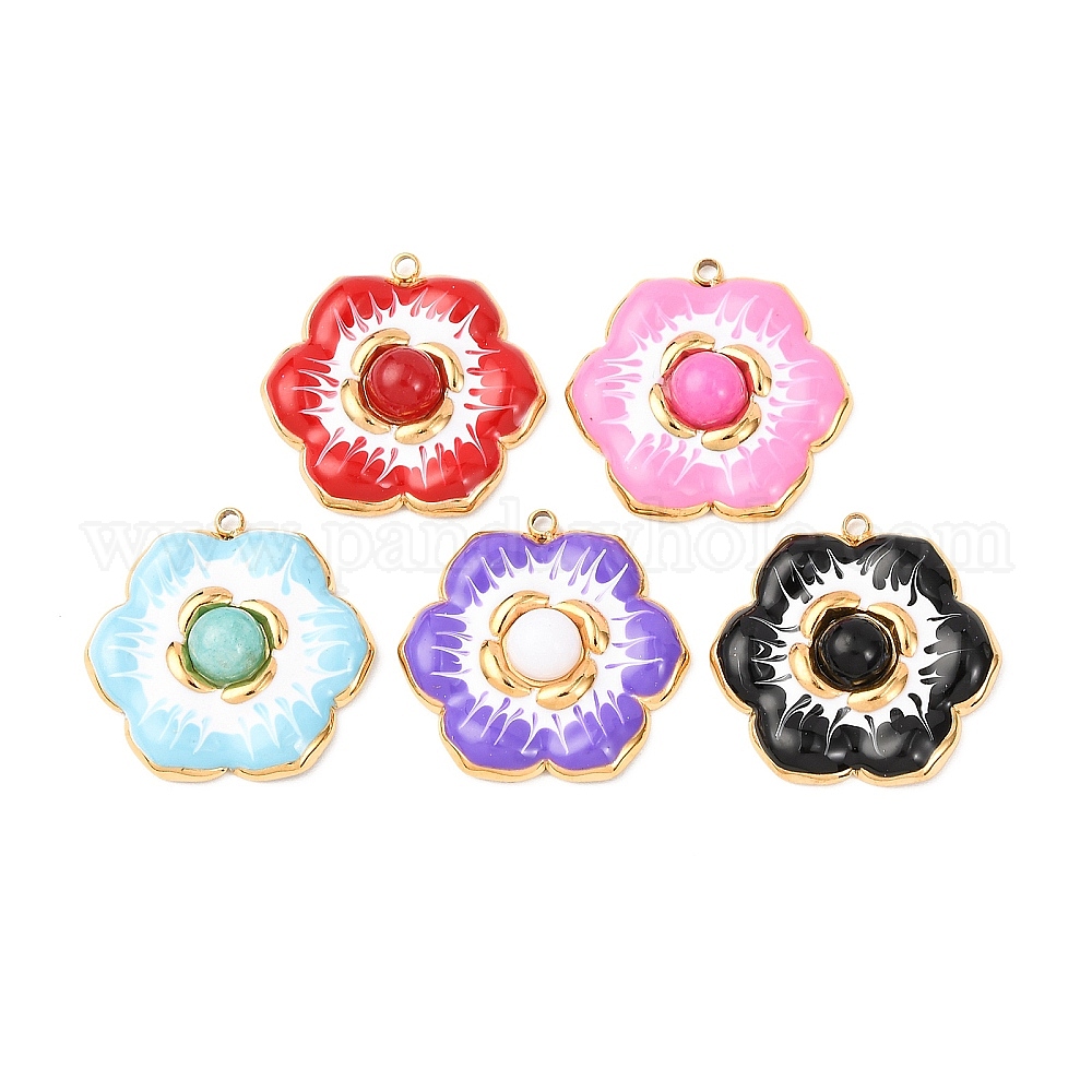 304 подвески из нержавеющей стали, цветок, с эмалью