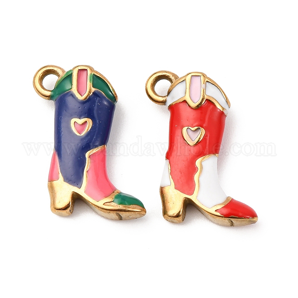 304 подвески из нержавеющей стали, ботинки, с эмалью, золотые