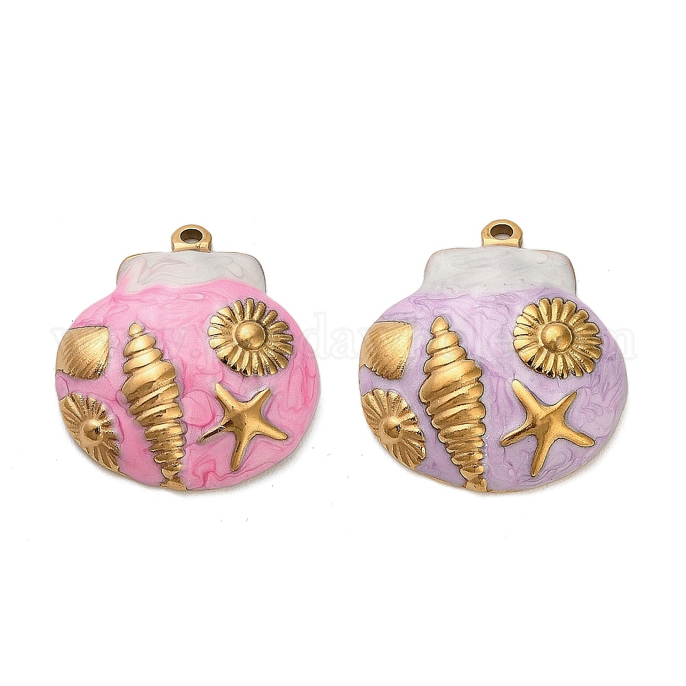 304 нержавеющей стальной эмали подвески, в форме ракушки с подвесками в виде раковины и морской звезды, ионное покрытие (ip), золотые