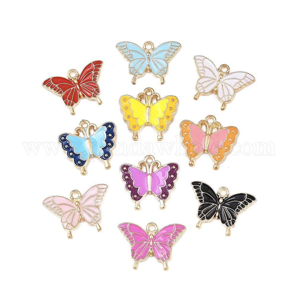 • (52) Непрозрачная лаванда Сплав эмали прелести, золотые, бабочка, разноцветные, 14.5x20x2 мм, отверстие : 1.5 мм