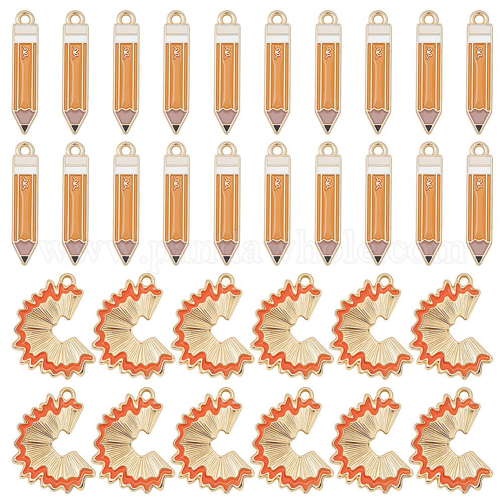 40 шт 2 стили подвески из сплава эмали, Брелоки в виде карандаша и чипса от карандаша, золотые