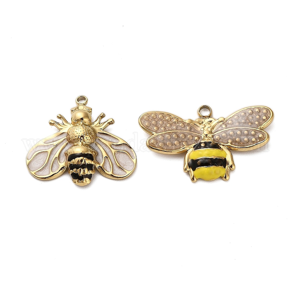 304 подвески из нержавеющей стали, Пчелы, с эмалью, реальный 18 k позолоченный, ионное покрытие (ip)