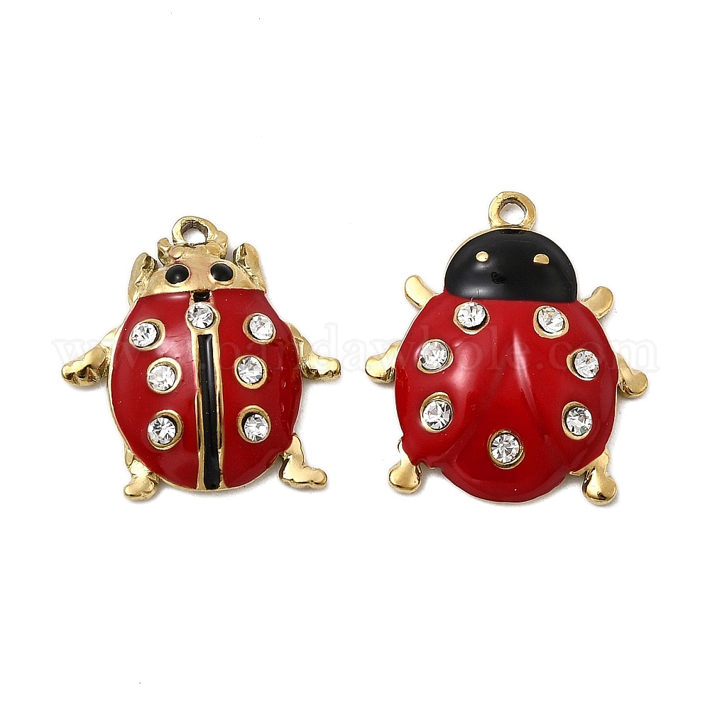 304 прелести нержавеющей стали, божья коровка прелести, с эмалью и стразами, ионное покрытие (ip)