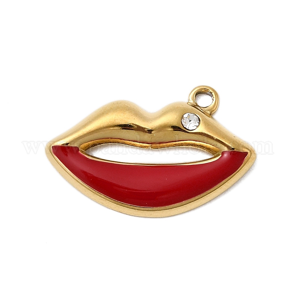 304 прелести нержавеющей стали, губы прелести, с эмалью и стразами, ионное покрытие (ip)