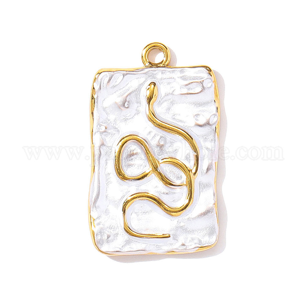 • Белый 304 нержавеющей стальной эмали подвески, прямоугольник со змеиными подвесками, ионное покрытие (ip), реальный 18 k позолоченный, белые, 25x15 мм