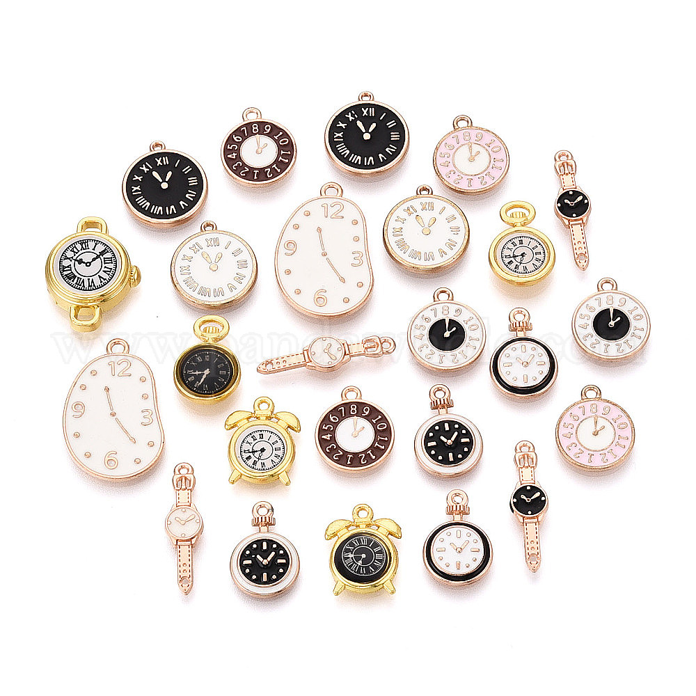 • (52) Непрозрачная лаванда Подвески из эмали и сплава, часы, золотой свет, разноцветные, 15~26.5x6~16.5x1.5~5.5 мм, отверстие : 1~2 мм