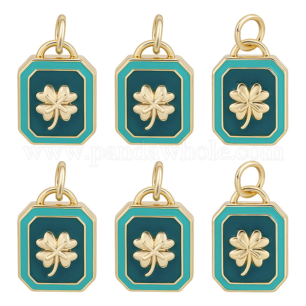 6 кулоны латунные эмалевые шт., прямоугольник с клевером, с целью перехода в кольце (0387HG)