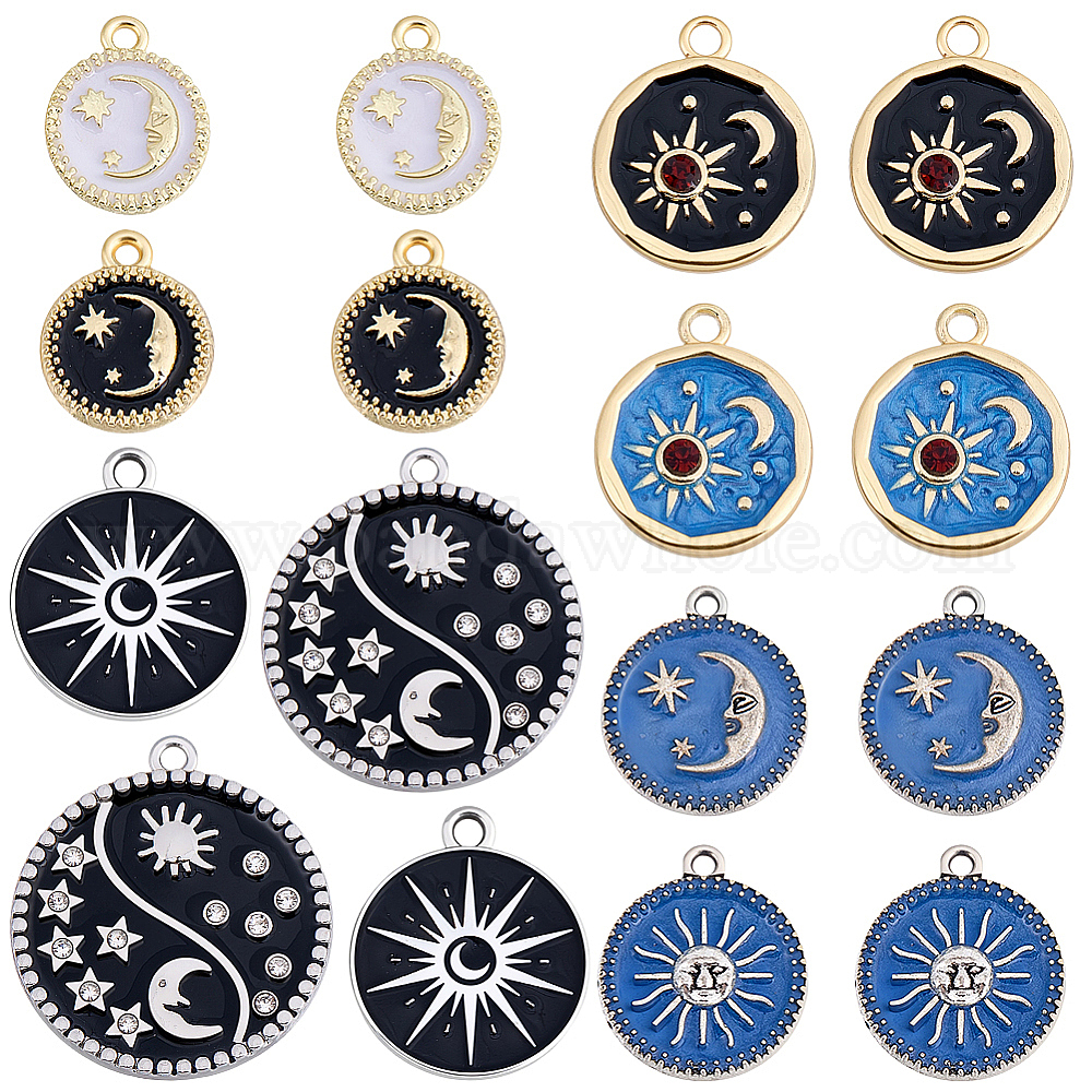 16 шт 8 стили подвески из сплава эмали, платина, плоский круглый с подвесками солнца и луны