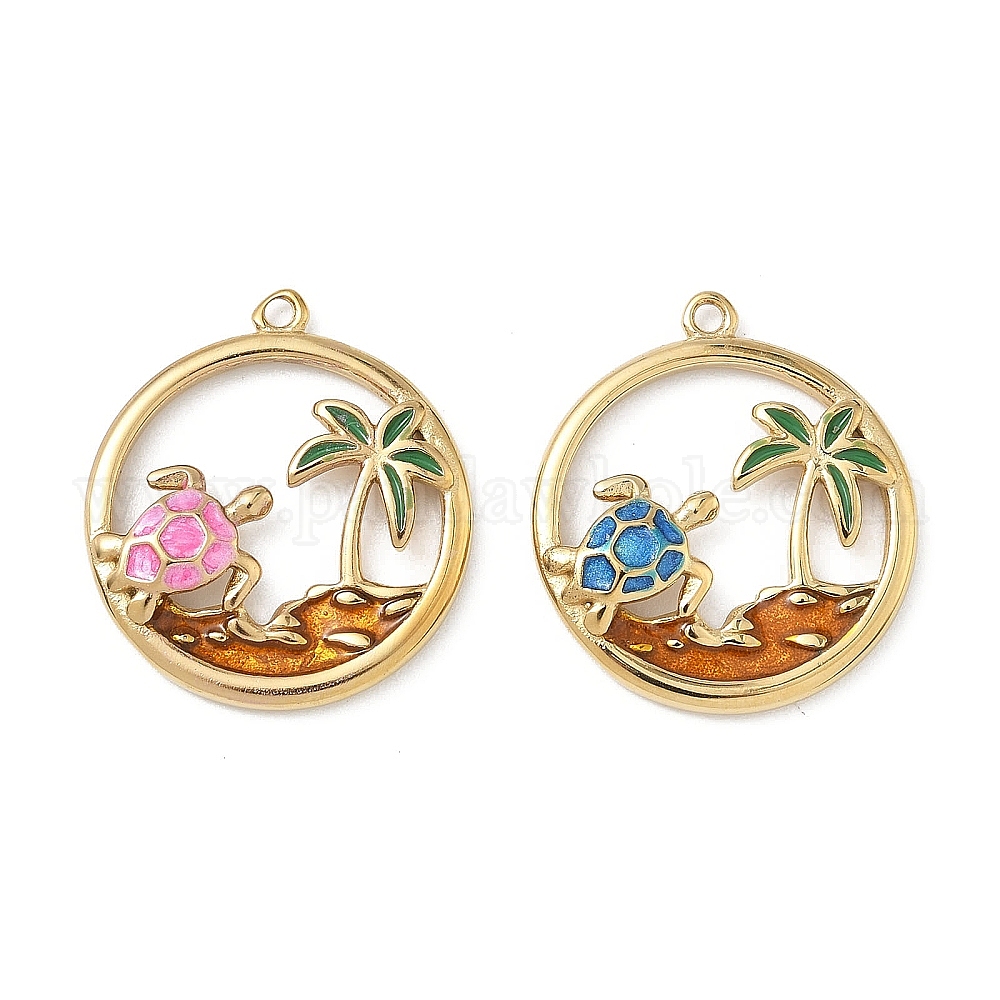 304 нержавеющей стальной эмали подвески, кольцо с подвесками в виде черепахи и кокосовой пальмы, реальный 14 k позолоченный