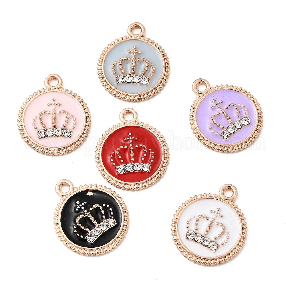 • (52) Непрозрачная лаванда Подвески из эмали и сплава, со стразами, плоско-круглые, разноцветные, 19.5x16.5x2 мм, отверстие : 1.8 мм